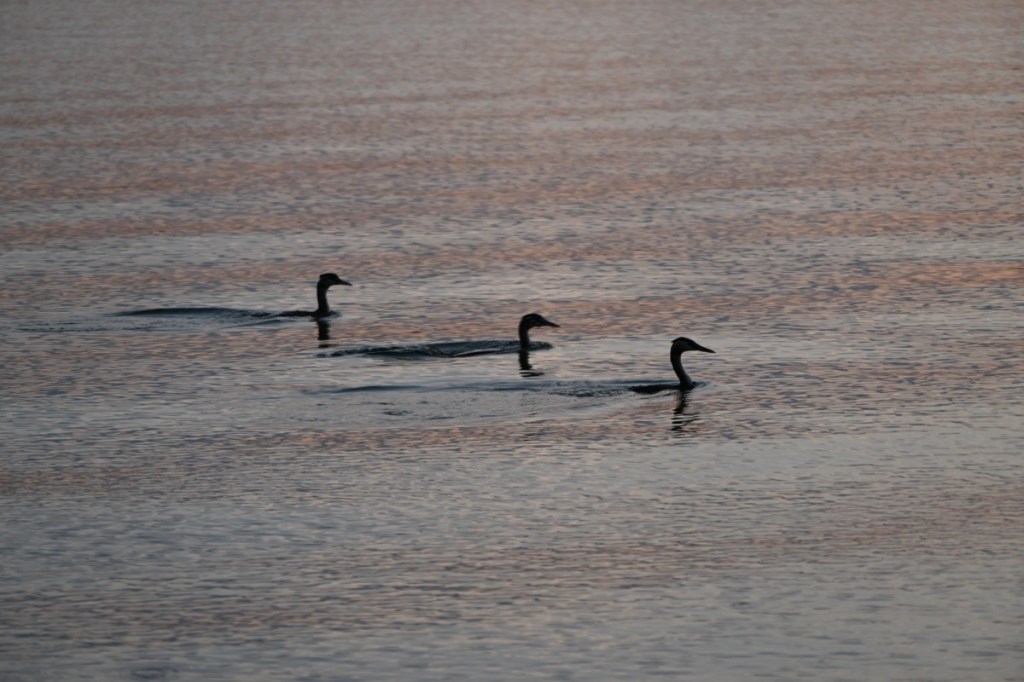 Eine friedliche Haubentaucher Familie am späteren Abend